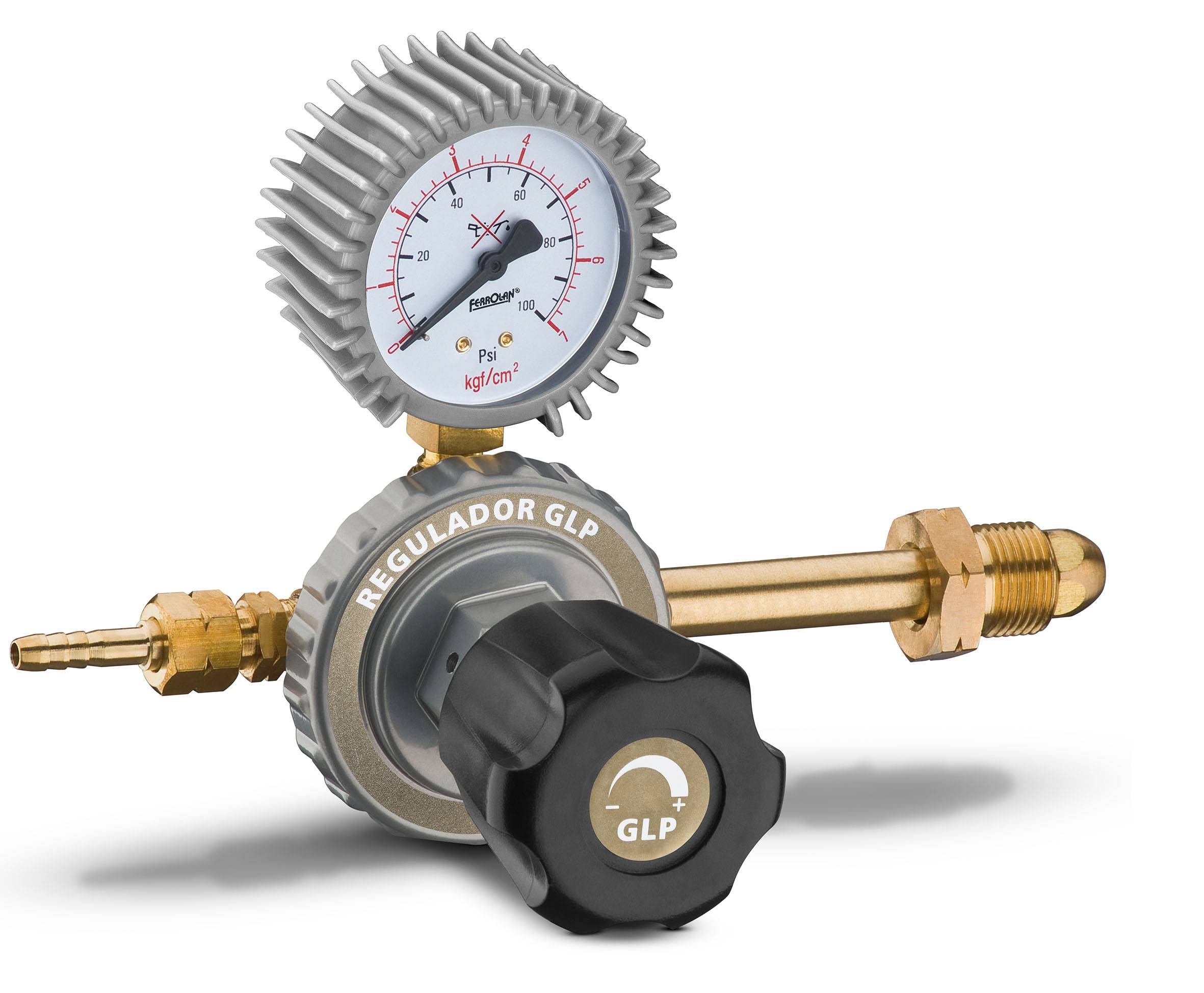 Regulador de pressão para gás GLP de simples estágio, para uso industrial nos processos de brasagem, corte e aquecimento leve.